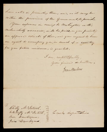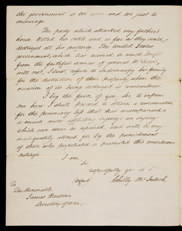 Letter to James Barbour from Chilly McIntosh, Intullifkey McIntosh, Ben Danlausau, and [Jin] Danlausau