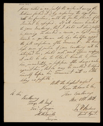 Letter to James Barbour from Chilly McIntosh, Intullifkey McIntosh, Ben Danlausau, and [Jin] Danlausau