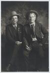 Charles M. Russell and Friends Seated Next to Log Cabin |